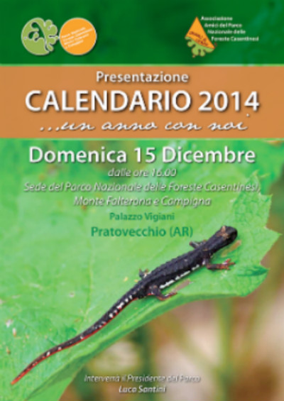 PRESENTAZIONE DEL CALENDARIO DEL PARCO 2014DOMENICA 15 DICEMBRE DALLE ORE 16.00 - SEDE ENTE PARCO - PALAZZO VIGIANI, PRATOVECCHIO (AR) Si terrà domenica pomeriggio dalle ore 16.00, presso la sede dell'ente Parco di Palazzo Vigiani, a Pratovecchio, la presentazione del nuovo calendario 2014 realizzato dall'Associazione Amici del PNFC, l’invito è esteso a tutti gli interessati.Allegato: