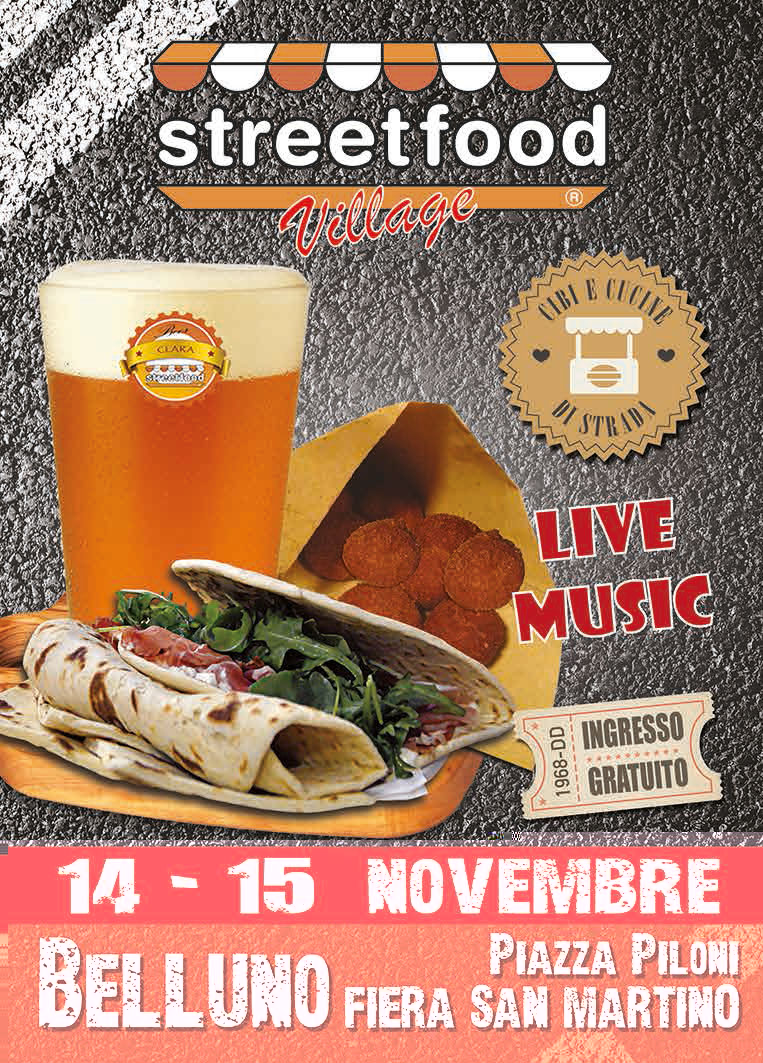 Dal 14 al 15 novembre lo Streetfood Village torna nella città veneta per deliziare i palati Streetfood Village Belluno: San Martino si festeggia con il cibo di strada In piazza Piloni torna per la seconda volta in un anno il villaggio del cibo di straada certificato dall’associazione nazionale Streetfood. A Belluno oltre 30 cibi di strada da tutto il mondo a suon di musica e festa per la tradizionale Fiera di San Martino Da sabato 14 a domenica 15 novembre, lo Streetfood Tour dopo il successo dello scorso luglio torna a far tappa in Veneto, a Belluno, con la ventottesima tappa del tour nazionale del cibo di strada, l’unico certificato con la tendina e tanto amato dal pubblico delle piazze d’Italia. A fare da sfondo allo Streetfood Village di Piazza Piloni, sarà la tradizionale e tanto attesa Fiera di San Martino a Belluno con la quale l’Associazione nazionale Streetfood che da anni certifica e promuove il vero cibo di strada italiano collabora per allietare il palato e le orecchie dei tanti presenti attesi. Lo Streetfood Village sarà sistemato ancora una volta nel cuore della città veneta, punto nevralgico della movida cittadina dove per due giorni musica con dj set vari, cibo e bevande faranno da attrattore principale dei tanti avventori. Decine di migliaia sono gli streetfoodies attesi presso gli stand saranno aperti sabato dalle 17 alle 24 e domenica dalle 8 alle 24. «Siamo particolarmente felici di tornare a Belluno con questa che è ormai la quarta volta consecutiva – spiega Massimiliano Ricciarini, presidente e fondatore di Streetfood – e non a caso questa è la città che ospita l’ultima tappa del nostro Streetfood Tour 2015 che ha visto il cibo di strada protagonista in 28 piazze d’Italia». Il programma. Nell’ambito della Fiera di San Martino di Belluno nello Streetfood Village saranno presenti oltre 30 specialità da tutta Italia e dal mondo per far degustare alle migliaia di persone previste i cibi di strada più tradizionali e genuini (vedi allegato). Ce ne sarà per tutti i gusti. Segreto del successo è l’organizzazione che l’associazione Streetfood mette in atto con la sua decennale esperienza. Oltre ai tradizionali cibi di strada, come le panelle siciliane, le bombette pugliesi, o il lampredotto toscano, nell’evento saranno presentate diverse novità (vedi elenco allegato). Sono attese nella città veneta oltre 40 mila persone in tre giorni. Per quanto riguarda il programma musicale partirà sabato 14 novembre in Piazza Piloni ore 19 con John Denver Project-Band. Concerto country sotto le Dolomiti. L’associazione nazionale Streetfood nata nel 2004 è stato il primo progetto in Italia a promuovere il cibo come cultura e il cibo di strada come format vincente in quanto “riassume in un cartoccio” storia e tradizioni di ogni regione d’Italia da scoprire e gustare con le mani. Negli eventi di quest’anno sono state raggiunte in tutta Italia centinaia di migliaia di persone che hanno consumato oltre 50 quintali di patate, 150 addirittura di melagrane. Oltre 20 mila piadine, poi ancora 15 mila arancine, 800 kg di Pane ca’ Meusa, 500 kg di panelle. Ancora oltre una tonnellata di paella, 40 quintali di carne argentina, 20 quintali di pesce e altrettanti di lampredotto. Dalla Puglia sono arrivati più di 50 quintali di bombette e 600 sono i kg di lime per i cocktail “on the road”. Dall’Abruzzo 120 mila arrosticini e oltre mille kg di farina per panigacci di Podenzana (Ms). Un successo non solo per gli organizzatori degli eventi, ma da condividere con gli operatori economici del settore e le realtà territoriali che hanno creduto in questo progetto.