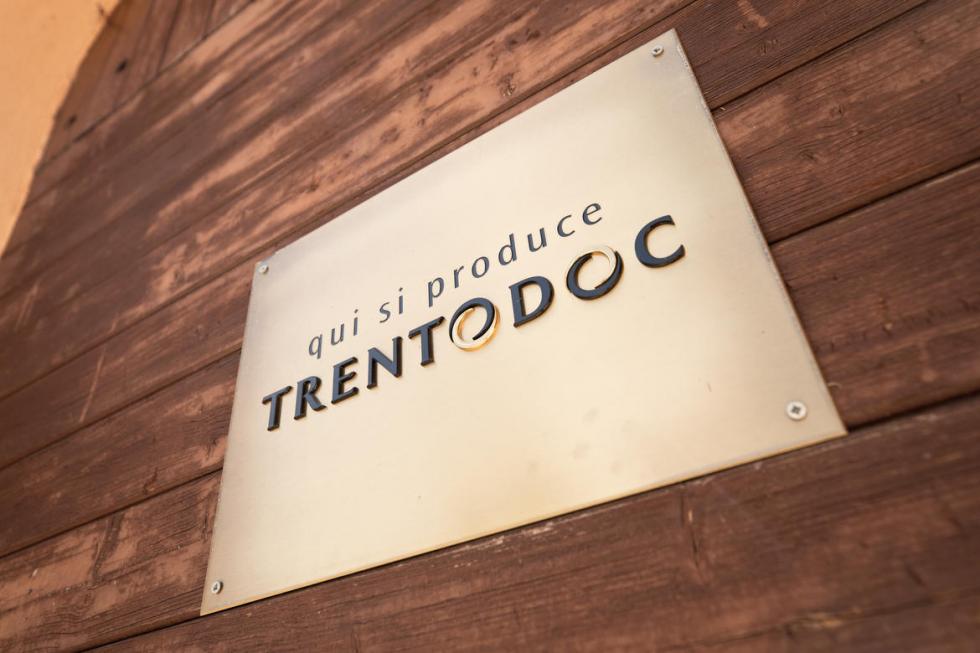 CANTINE Targa QUI SI PRODUCE TRENTODOC [ Archivio Istituto Trento doc] Le case spumantistiche associate all'Istituto Trento Doc sono sessantaquattro, numero in costante crescita dal 2013. Il marchio collettivo Trentodoc, nato nel 1997 per iniziativa di istituzioni e produttori, intende rafforzare l’identità delle bollicine di montagna e valorizzare il suo legame con il territorio. Apposto su ogni etichetta, il lettering presenta due caratteristiche “o” che richiamano il fondo della bottiglia in movimento e vuole sottolineare l’atto distintivo del metodo classico, il “remuage”, l’operazione manuale di rotazione delle bottiglie eseguita dai produttori Trentodoc sui tipici cavalletti in legno.
