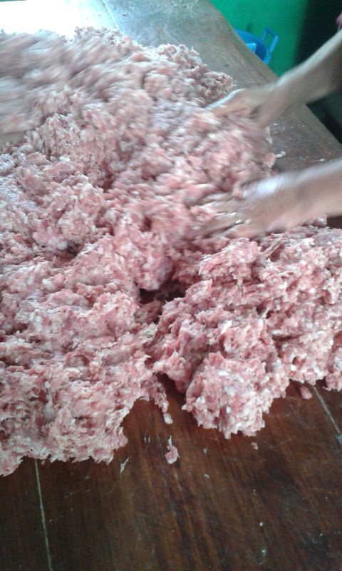 Si era una mia scrofetta incrocio strano 8-) vietnamita , cinghiale e cinghiale e i figli incrociati con cinghiale puro ma sono ottimi per i salami testato :D :D le salsicce invece le ho fatte con maiale incrocio landraceXlargewhite