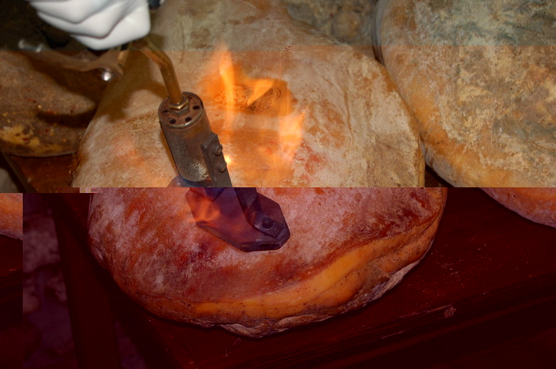 Ciao a Tutti ho rintracciato foto della marcatura a caldo di un grande Prosciutto del vasto Panorama Italiano.