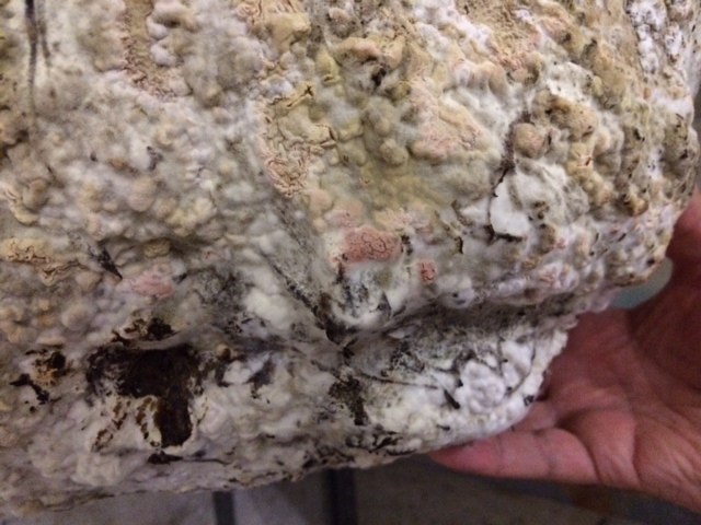 buongiorno a tutti, vi vorrei sottoporre un problema riscontrato nella mia cantina, scrivo da brescia e la cantina funziona a dovere da molti anni con ottimi risultati, tutti i parametri "vitali" per i miei salumi sono monitorati tutti i giorni, ieri mattina ho notato delle macchie di colore rosa sia su un prosciutto di 14 mesi sia sul budello di parecchi salami fatti circa un mese fa, ho chiesto un po' in giro a tutti i miei maestri ma non ho avuto risposte certe, ho tagliato un salame di piccolo calibro e non si notano difetti ne olfattivi ne di sapore...anzi era buono... ma siccome sono prodotti destinati alla mia famiglia e amici voglio avere la certezza che siamo esenti da qualsiasi rischio per la loro salute. Ho allegato le foto del prosciutto incriminato spero che qualcuno mi possa aiutare.