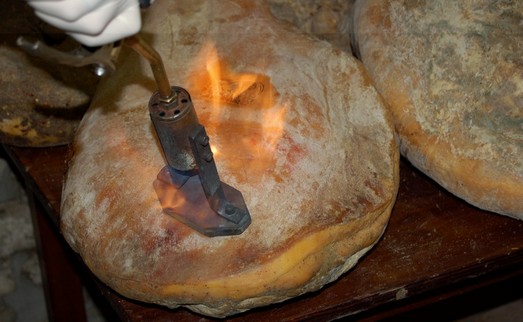 Stagionatura; inizia d'ora in poi il vero periodo di stagionatura che può durare anche 24- 32 mesi con T 12-16°C e Ur 70-80%, in questi mesi il prosciutto acquista sapore e fragranza. La stagionatura avviene in cantine in sasso, aperte quando il tempo lo permette ai venti che attraversando colline e boschi si caricano di profumi inimitabili. Con stagionature intorno ai 24mesi o superiori è facile che tagliando un prosciutto crudo, si osservino delle formazioni biancastre, di aspetto gessoso, composte da aminoacidi, derivanti dalla proteolisi indotta da proteasi della carne. In particolare sono costituiti da tirosina e in concentrazione minore da fenilalanina e da altri aminoacidi " il marchio naturale della qualità"