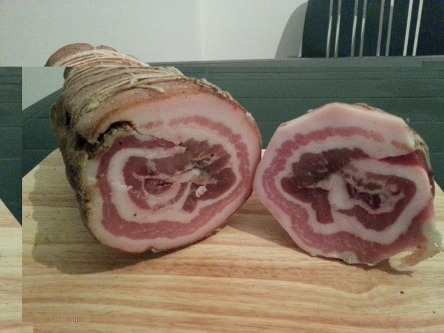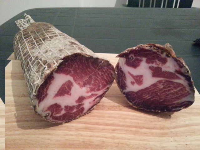 Per essere la prima esperienza sono molto soddisfatto.coppa non troppo salata, buona.forse si potecva lasciar stagionare ancora un pochino. Per la pancetta invece devo perfezionare la legatura e e magari aggiungere un po di spezie . A ottobre si raddoppia la produzione aggiungo anche guanciale e pancetta tesa e 10 kg di salami