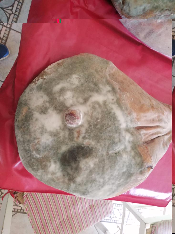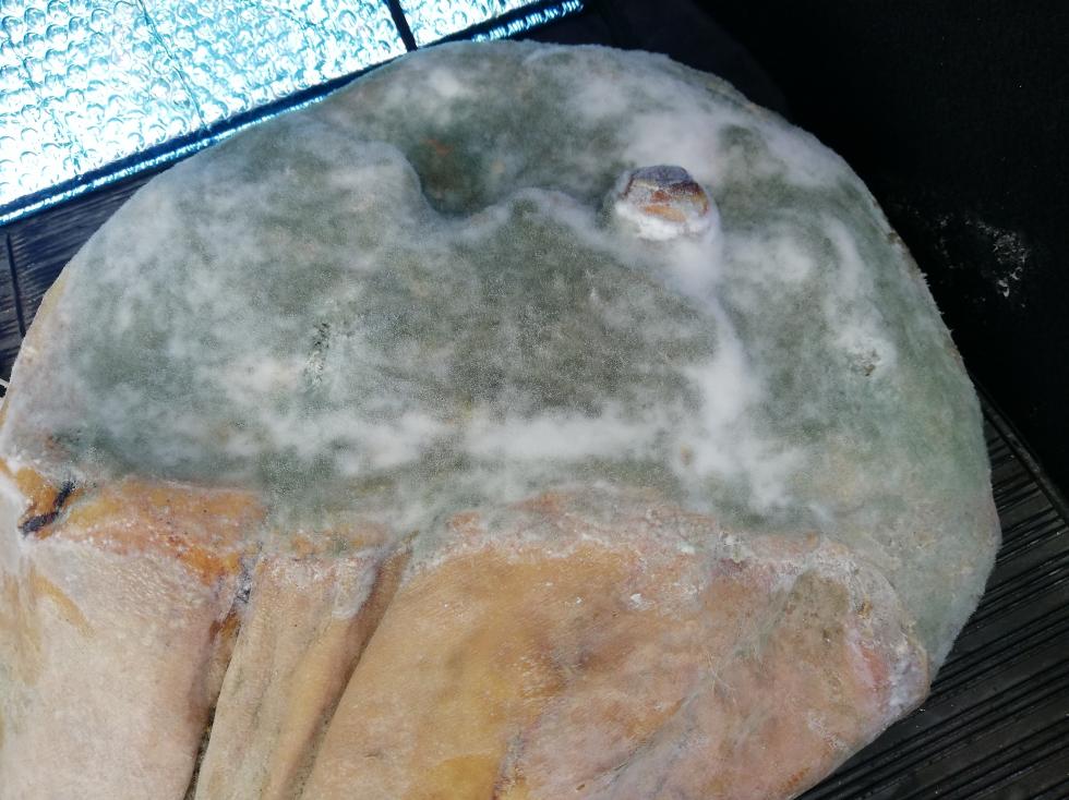 Buonasera a tutti! Oggi sono andato a ricontrollare dei prosciutti in una mia cantina, che non andavo a controllare dal 27 di Aprile. La loro condizione era ottimale l'ultima colta che li ho visti, si trovano già a quasi tre anni di stagionatura completa. Oggi sono andato a controllare e li ho trovati completamente coperti di una muffa bianca e verdastra, che aveva colpito anche la parte retrostante della cotenna del prosciutto (dico subito che date le piogge abbondanti e consecutive che ci sono state da un po' di tempo a questa parte, l'umidità all'interno della cantina sarà salita di sicuro ed il poco ricircolo d'aria c'è stato, perchè non sono andato ad aprire la porta come faccio di solito ogni tanto, e l'unica fonte di aria è una piccola finestrella che si affaccia sul piccolo viottolo di paese, dove si trova la cantina, che lascio sempre aperta). Dato che non mi è mai successo una cosa del genere, chiedo a voi, a chi mi può essere utile, se incorro in problematiche di tossicità relativa alle muffe che ho trovato. Non mi ero mai spinto così tanto con una stagionatura...i prosciutti sono insugnati per bene. Vi allego le foto. Grazie mille a chiunque potrà darmi delle informazioni o dei pareri.