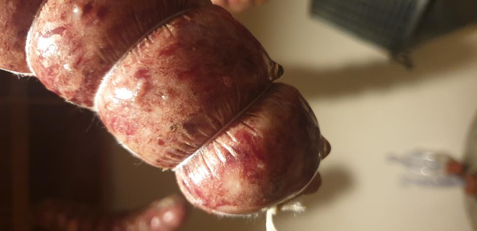 Quest'anno abbiamo utilizzato budello di vacca, abbiamo fatto una stufatura di 24 ore in una stanza a 24 gradi con il 45% di umiditá, abbiamo bucato il budello e trasferito in cantina (15 gradi costanti e 70% di umiditá). I salami hanno gocciolato molto di piú (allego foto per capire quanto abbiano "spurgato") dell'anno precedente ma quando vado a bucare le sacche d'aria il budello rimane dov'é e non si stringe attorno al salame in alcun modo. I salami sono stati legati con spago normale ed alcuni con quello da cucina. Qualcuno saprebbe spiegarmi il motivo? Che tipo di errore abbiamo commesso? Come eventualmente evitarlo?