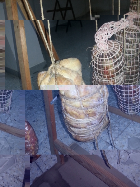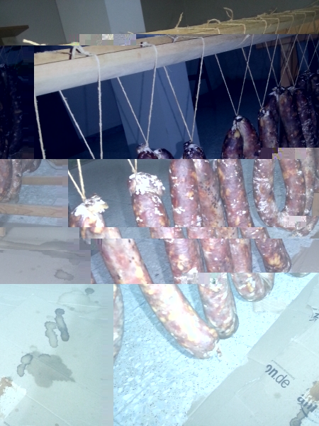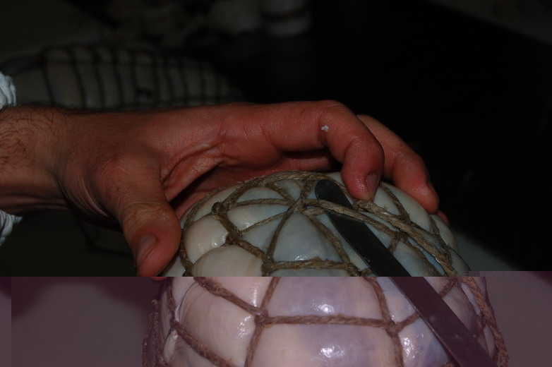 Non riesco a capire di cosa si tratti ! occorrerebbe poter osservare da vicino, toccare, annusare ... così non ne ho la più pallida idea! Un'osservazione che spero ti risulti costruttiva, se mi permetti, però vorrei farla! Quando si cerca di fare questi pezzi particolari, occorre rubare il mestiere! Ho postato diverse foto del metodo a rete con cui si deve legare questo tipo di prodotti, che non è solo forma di abbellimento. Sono pezzi carnei che avendo una stagionatura prolungata vanno tirati molto. Capisco che non sia semplice, ma almeno tentarci, passando 8-12 guide (briglie) e poi con i passi (a 2cm) bloccare le guide, girandoci intorno con l'aiuto di un semplice tirafilo. saluti mf