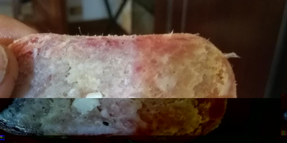 Jamesp ha scritto: Salato bene cosa significa? Che percentuale di sale hai messo? Secondo me gli errori più grandi stanno nella salatura e nel ph della carne. Probabilmente la carne é anche stata lavorata "calda". Non sapendo che tipo di carne hai usato, le varie fasi di lavorazione ecc faccio fatica a darti un giudizio corretto. Gli altri salami come sono?  Riprendo la discussione dopo qualche tempo di assenza. Nel frattempo il 28 gennaio ho confezionato un centinaiio di salami con della crane acquistata presso un supermercato Coop. Ho salato con 27 gr. al kg., ho messo pepe macinato e pepe in grani, movimentando la carne più e più volte ed insaccando con un tritacarne manuale, usando in parte budelli naturali salati ed in parte budelli "secchi". Ho fatto un'asciugatura a temperatura di circa 20° per un paio di giorni poi li ho appesi in cantina, controllando la ventilazione, l'umidità e la temperatura, che sono state nella norma. Dopo una decina di giorni li ho messi sotto pressa; si sono asciugati abbastanza bene, hanno mantenuto la forma. Ieri dopo circa un mese dopo la lavorazione ho aperto alcuni salami, per controllarne lo stato. DELUSIONE notevole, perché presentavano lo stesso problema dei due salami di prova, di cui sopra, con delle "macchie" e dei buchi al centro e della carne ben compatta, saporita e colorata verso l'esterno. Certo, non li hio aperti tutti, ma ho il timore che siano tutti da buttare. Dove ho sbagliato? Forse li ho messi sotto pressa troppo presto, forse non ho impastato bene la carne ed hoi insaccato, quindi, dei pezzi meno salati? Non so cosa pensare. Mia moglie la controllato anche la fase della luna, che era in crescenza, ricordandomui che i nostri genitori non avrebbero mai e poi mai fatto i salami in luna crescente. Io non credo che c'entri la luna, ma ...