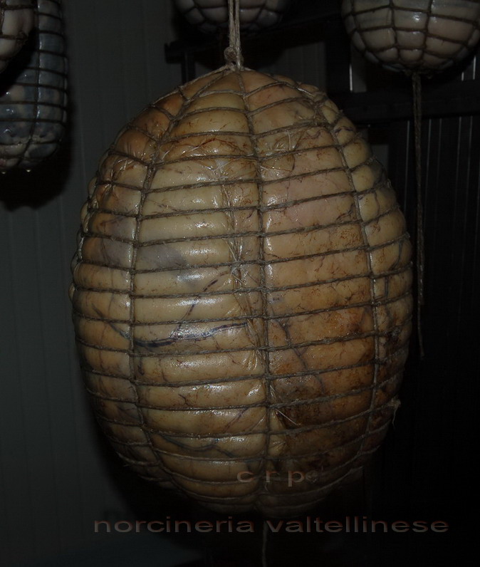 Stagionatura: ° Aglio ° Pepe Pestare 2-3 capi d' aglio in un mortaio fino a formare una pappina omogenea. Si pulisce dal sale e si lava sotto una cannella di acqua fredda, si asciuga si lava con aceto, una passata completa con l'aglio pestato e si ricopre di pepe. (per sicurezza contro la mosca noi si mette in una calza apposta per stagionare che si compra nei negozi di forniture per macellerie)