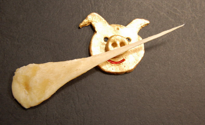 Ciao nemesis, grazie dell'info, proverò con l'acqua ossigenata, il macellaio mi ha detto che gli altri, lasciano seccare i filamenti di carne attaccati all'ossicino e poi usano la cartavetra, ma pensandoci, con l'acqua ossigenata mi sembra più ben fatto. La parte di storia di quest'ossicino che più mi ha sorpreso è la difficoltà nel reperirlo, sono settimane che aspetto che nella macelleria equina dove ho chiesto la cortesia, riescano a trovarne uno lungo e robusto, mi dicono che tutti sono deboli e si spezzano, anche se estratti da cavalloni di sette quintali. In attesa, cercherò di onorare quello che ho. Ciao e grazie