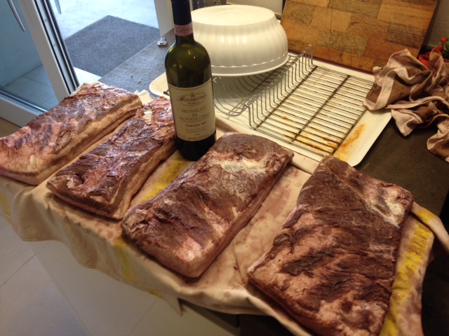 Salve a tutti e grazie a Carpentieri per i contributi. Abito in collina a Grosseto e sono un appassionato di salumi. Era da 4 anni che non rimettevo mani nella preparazione, qualche giorno fa mi son fatto dare due bei pezzi di pancetta (rigatino) da un amico di suino Grigio allo stato Semibrado. Volevo chiedere a Carpentieri se il metodo che sto usando per salare/stagionare il rigatino è corretto. Ho tagliato in 4 pezzi da circa 1,5/ 2 Kg la pancetta, rifilata da eventuali pezzi penzolanti e salata e massaggiata sul tavolo, poi messe in una bacinella con sotto un fondo di sale grosso, poi riposti i pezzi uno sopra l'altro con un altra spolverata di sale e messa la bacinella con la pancetta in una stanza senza riscaldamento a circa 15 gradi. Ogni giorno/due ho ripreso i pezzi, massaggiandoli e alternandoli di posizione, scolando il liquido che ne è fuoriuscito. Domani è l'8 giorno e voglio levare e sciacquare con del vino rosso e conciarle con aglio pestato prima e poi con pepe e rosmarino. E metterle appese in un casotto dove cè una buona umidità ed una temperatura di circa 10°. Per dei pezzi per un totale di circa 7 Kg ho usato solo sale grosso e alla fine ne ho consumato circa 4 Kg. I miei dubbi (oltre a sapere se la procedura va bene) sono : - va bene aver usato solo sale grosso durante questi 7 giorni ? - ho messo troppo sale ? (considerando che naturalmente la carne ne ha assorbito una minima parte il resto è nella ciotola).