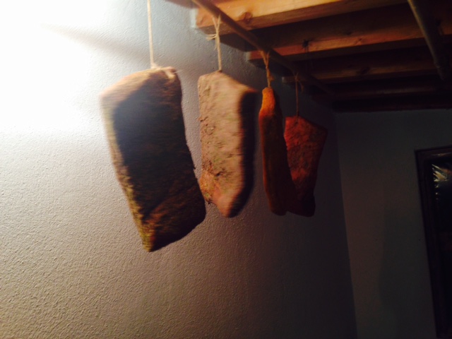 Ecco le foto della fine concia e appesi... ora si che devono riposare...