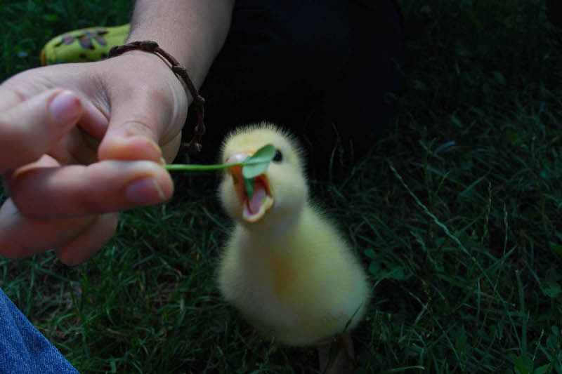 Commento file: Eccola! Non contenta di essersi spazzolata insalata e mangime, tutta intenta ad aggredire un trifoglio!