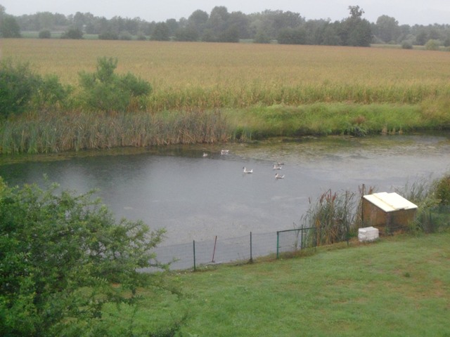 ecco qui il laghetto ed alcune delle mie oche...le foto sono dell'anno scorso,adesso sono arrivata a quota 8 e nel nido ci son già 20 uova.....spero solo che non litighino per covarle