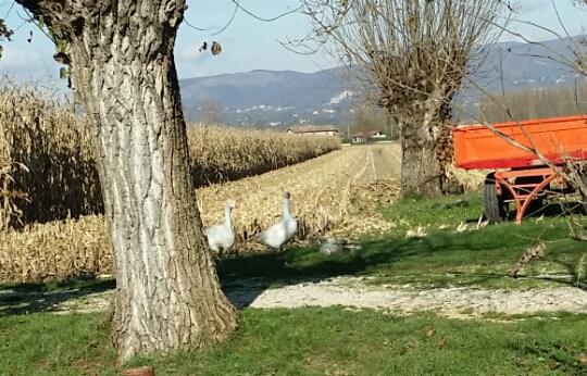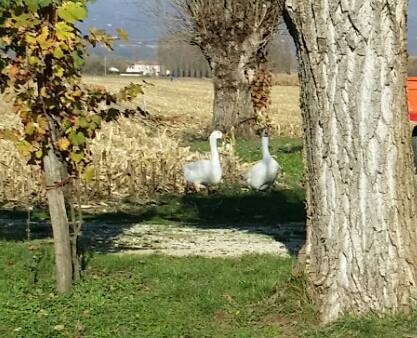 Dalle foto si vede poco nulla, ma non mi sembrano Romagnole....appaiono troppo grandi e pure il portamento, specialmente di una, è troppo orizzontale (troppo prostrato in avanti)...per caso hanno 2 fanoni?? Di che colore erano quando erano anatroccoli di pochi giorni? Quanto hanno di età? Io ho 2 Romagnole pure di cui una con il ciuffo, ma fuori standard (purtroppo non riesco a trovare un maschio decente