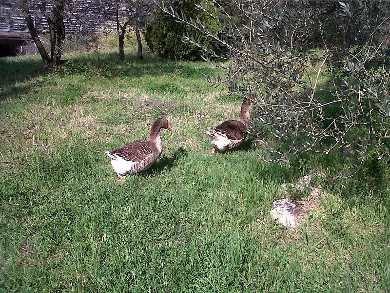 Salve a tutti.Ho una coppia di Oche nel campo.Il maschio ha appena un anno,la femmina di piu'.Depone le uova, ma io sinceramente non l'ho mai visti accoppiarsi o riti amorosi, quindi secondo me le uova non sono fecondate. Leggo adesso sul forum di agraria che i maschi di Tolosa sviluppano piu' tardi.