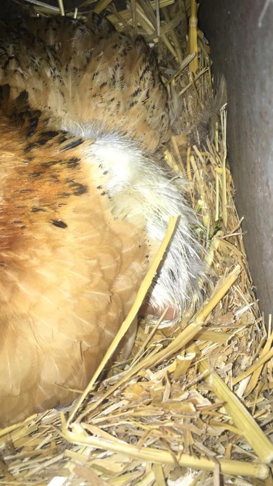 Le oche sotto le galline stanno nascendo, chissà di che colori saranno, siamo al 33, in anticipo rispetto all'anno scorso. Spunta solo un po' di piumino e si vede poco, non ho disturbato più di tanto sennò la chioccia si irritava