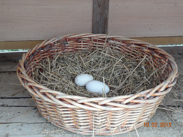 Ciao ragazzi, oggi ho trovato una bella sorpresa appena sono andata a portare il cibo alle oche, ho visto che ha fatto il primo uovo!!!! E rovistando in giro ne ho trovato un altro! Non avevo mai visto un uovo di oca. E' preferibile lasciarlo o lo conservo dentro?