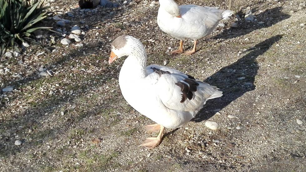 Salve a tutti, vi faccio vedere le foto delle mie oche, 2 bianche e una cignoide, così se qualcuno riconosce il maschio e la femmina, magari per me 2 femmine e un maschio sarebbe perfetto, grazie!! Un'atra domanda, ma le oche bianche comuni,quelle del campidoglio e romagnole sono la stessa cosa o tre completamente diverse con il solo colore bianco uguale?