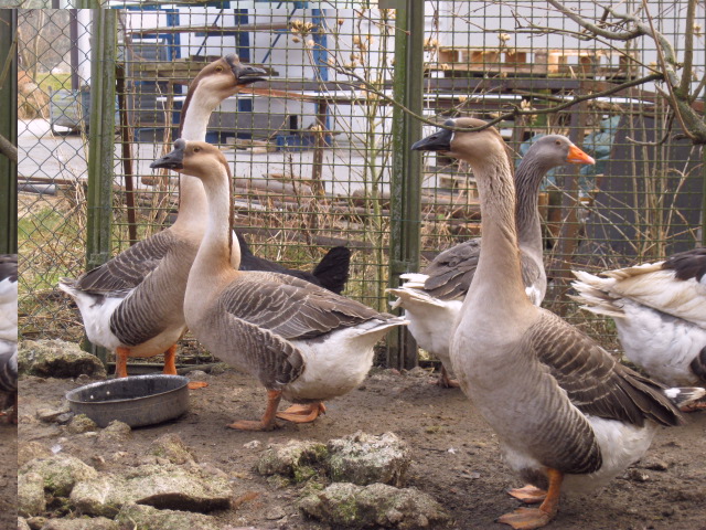Il maschio africano é molto grande ma allo stesso tempo molto docile, non ha mai dato segni di aggressività, anzi tende ad avvicinarsi per vedere cosa posso dargli....l'ho preso da una gran brava persona ! Anche le femmine sono molto dolci e se sono sul nido a deporre, due si lasciano avvicinare e accarezzare, facendomi il solletico sul braccio col becco.