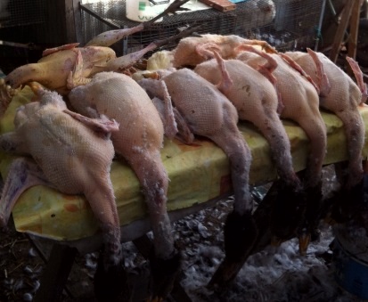 ronco1974 ha scritto: Mah.....io senza tanto impazzire tolgo le piume della coda e quelle grosse delle ali a secco, poi tolgo qualche piuma dal petto e dalla schiena in modo da far penetrare l'acqua sino alla pelle, quindi le immergo in acqua bella calda e via come i polli Non si spacca ne scioglie nulla guardate le mie che ho spennato oggi.... E nell'altra foto si va di prosciuttini  belle oche,che peso hanno? le mie prime due spennate ieri pronte da cucinare 3,6 e2.9kg ! che ne dite?