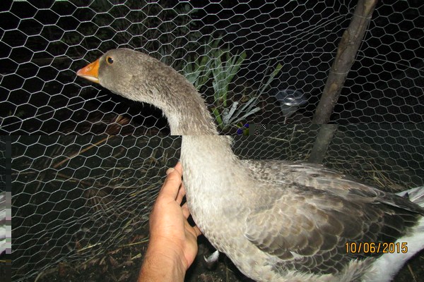 Tempo fà ho comprato due pulcinoni di oca venduta per tolosa, pagati 15 euro in una fiera a roma, portati con me in sicilia son cresciuti a meraviglia(salvo per una paralisi alle zampe presentatasi tre giorni dopo lacquisto, dovuta a carenze vitaminiche, subito risolta con varietà nella dieta e polivitaminici) e adesso hanno quasi ultimato il cambio piumaggio..magari è possibile identificarle con certerzza, un po per capire cosa ho tra le mani..i piedi sono rosa chiaro, il becco arancione, è presente solo una chiglia sul ventre, che inizia a prinunciarsi poco poco, così come una bavetta ancora minuscola alla gola, le ali presentano tutte le remiganti primarie di colore nero intenso, sia nel maschio che nella femmina..di seguito le foto del maschione, parola ai conoscitori della razza