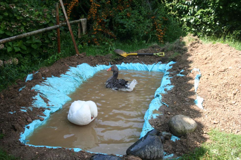 [Per le mie due oche ho scavato un piccolo stagno. Circa un metro e mezzo per tre, profondo circa quaranta centimetri, con un lato digradante. Un amico mi ha messo in guardia sulla forte possibilità che le oche inquinino l'acqua con le loro deiezioni, e che bevendola ne possano morire. A me sembra esagerato, ma certo devo cercare di tenerla pulita. Pensavo ad una pompa per laghetti con un filtro. Qualcuno che abbia affrontato il problema può darmi qualche consiglio?