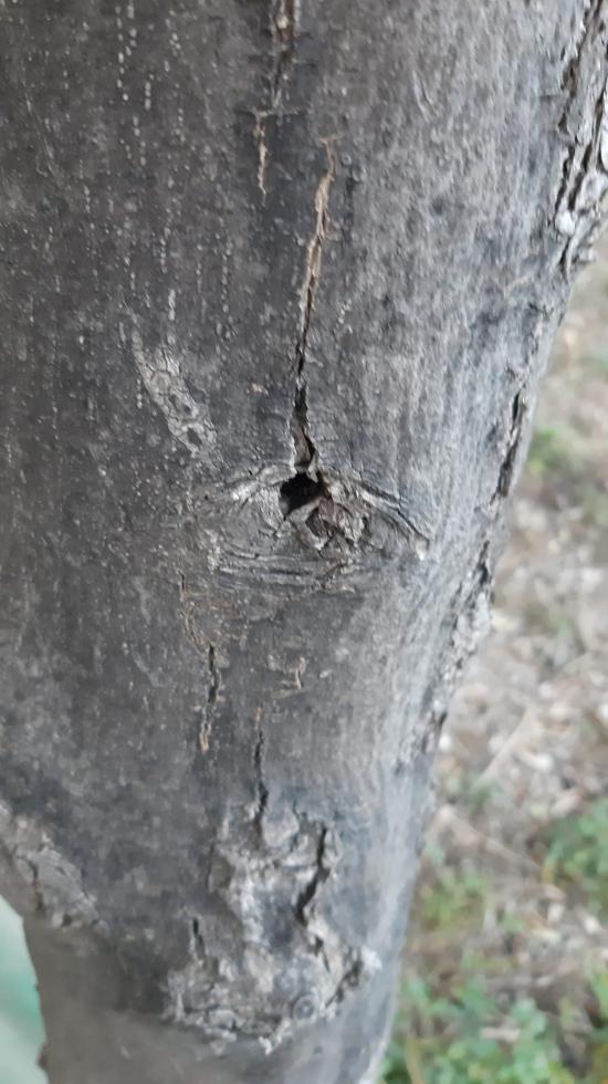 Come da oggetto ho potuto constatare che alcune piante presentano dei buchi sul tronco del tipo indicato in foto.