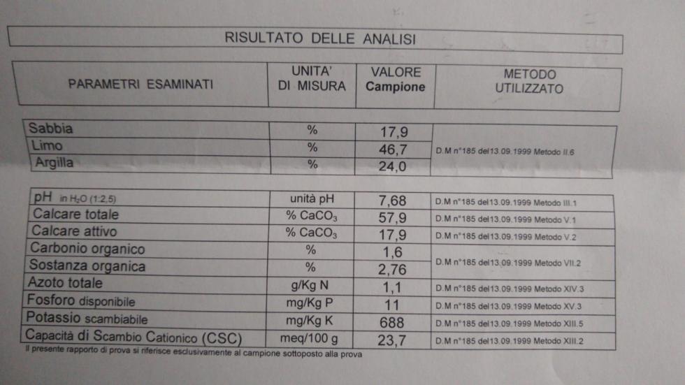 Se hai pazienza leggi il link allegato in cui é indicata l'interpretazione delle analisi del terreno .