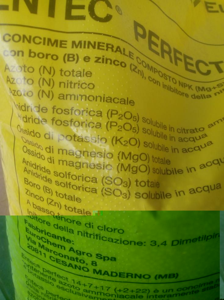 Quindi sono andato nello stesso circolo agrario e portando il sacchetto del primo concime ho chiesto, se necessario, l'integrazione.
