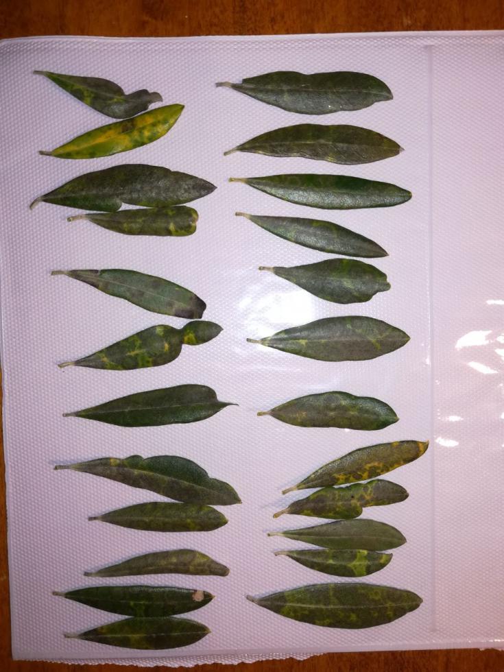 Tornando in Umbria per le vacanze di Pasqua, ho trovato i due olivi davanti casa terribilmente defogliati rispetto al normale. Nonostante la filloptosi, i nuovi germogli all'apice dei rametti ci sono ma guardando le foglie cadute a terra temo proprio di essere di fronte a qualche patologia che li sta colpendo. Vi allego 3 foto di alcune foglie rinvenute per terra.