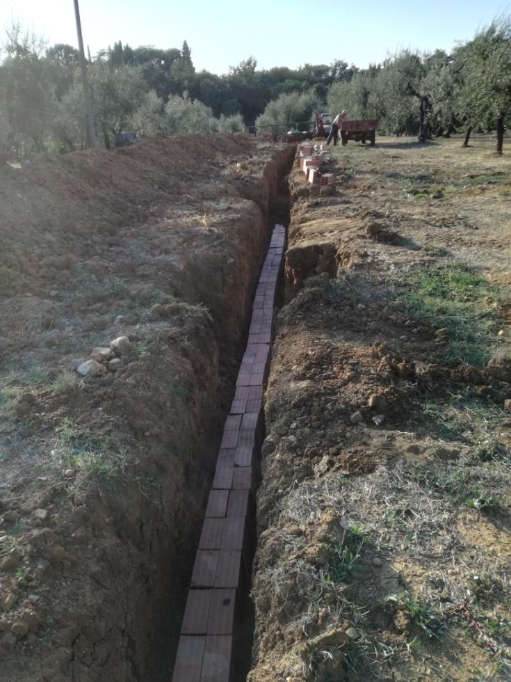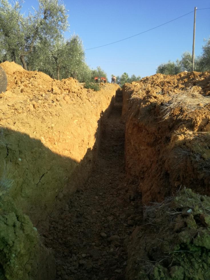 Inoltre in questo ettaro, gl'olivi, non sono disposti a fila ed è per quello che con mio fratello abbiamo deciso di rinnovare la coltivazione. Abbiamo deciso di fognare con foratine poste a 1 m di profondità, tutti i filari con un sesto di 5,8 x 5,8. Abbiamo oltretutto fatto un pozzo artesiano per facilitare la crescita delle colture con l'irrigazione.
