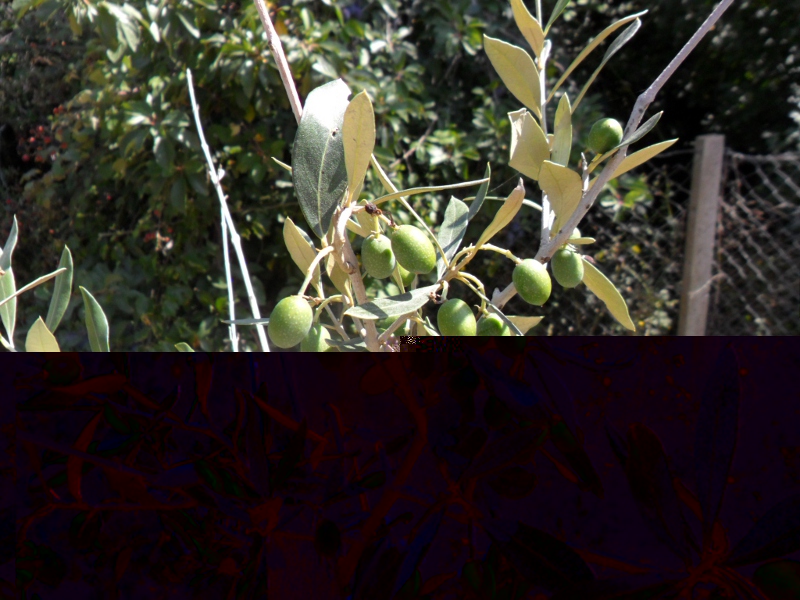 Ci siamo, la cascola è terminata, sul piangente con foglie belle grandi e lunghe più di Pendolino, quasi come Carolea ma di colore più verdi sopra e più chiare sotto, una discreta fruttificazione con mazzetti di 3/4 olive questa volta grandi come sul Leccino vicino, hanno forma cuoriforme allungata un po' come Nocellara al primo stadio :) qui siamo ancora al primo stadio dimensionale, la forma definitiva della drupa tra un mesetto, intanto il sole delle alpi picchia senza remissione e una pioggia sarebbe alquanto benvenuta però, niente in vista. Deve bastare l'irrigazione a goccia che fa del suo meglio ma ......