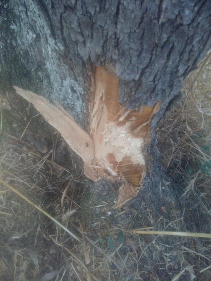 il trattore che sfalcia l'erba mi ha fatto questo danno che è abbastanza profondo intaccando cambio e durame. Il danno risale a lunedi, volevo chiedere che farci, se mettere mastice (ho quello già misto a rame) oppure, come ho letto qualche volta, la riparazione della ferita avviene meglio se non ci metto niente.