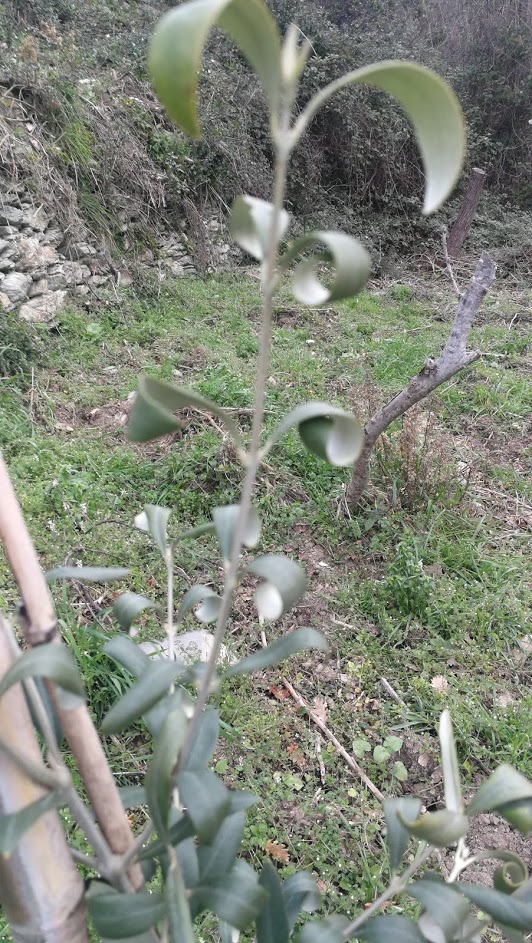 Ho piantato in autunno questo alberello di olivo che adesso presenta le foglie come da foto. Cosa può essere? Grazie!