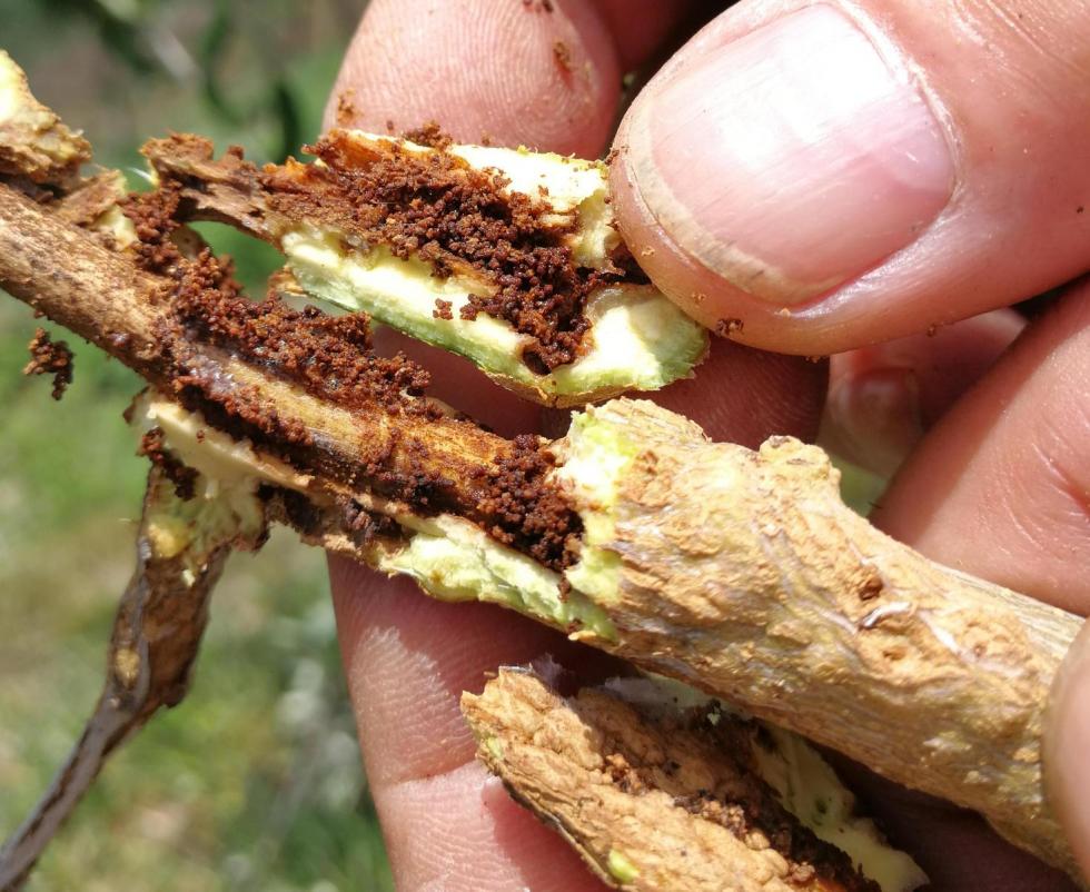 In pratica devi tagliare longitudinalmente il rametto per vedere se ci sono gallerie partendo dalle rosure.
