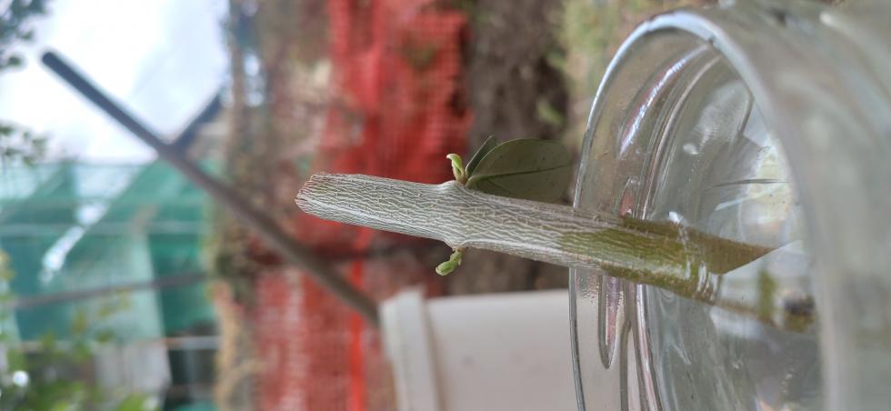 Buona sera, da un po di tempo sto facendo delle prove per far attecchire delle talee di olivo. Premetto che per diverso tempo ho provato a mettere subito in vaso le talee (con ormone radicante e lasciando a bagno il rametto appena qualche giorno) ma non son mai riuscite a radicare. Questa volta ho provato diversamente lasciando le talee a bagno per diverso tempo ricevendo così buoni risultati. Le due talee che vedete in foto sono a bagno da circa 3 mesi, come si può vedere stanno germogliando, la domanda è secondo voi si possono già mettere in vaso oppure occorre aspettare ancora? L'impianto radicante si deve sviluppare ancora di più?