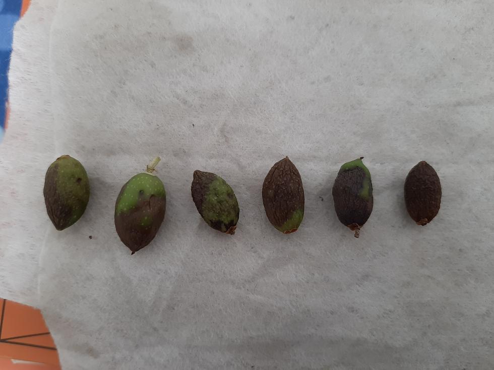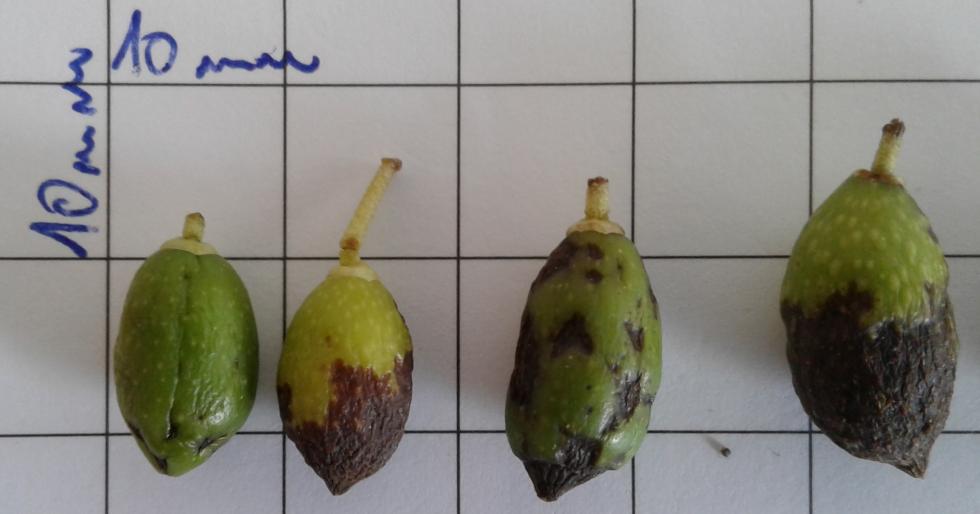 Circa gli annerimenti delle olive non saprei dire la causa specifica.