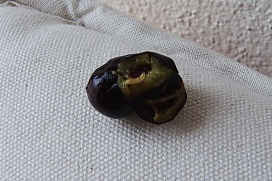 Nell'ultima foto del messaggio sopra postato sono visibili fori da mosca. Dentro ci si può trovare la larva (foto 1) oppure la pupa o persino gli adulti pronti a sfarfallare (da olive come queste, foto 2, che ho portato in laboratorio, messe in camera umida per favorire la sporulazione di patogeni fungini sono saltate fuori larve e pure un adulto di mosca foto3)