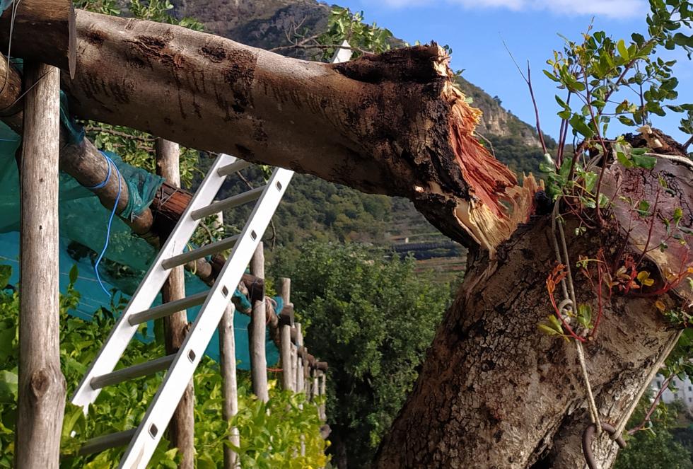 Alcune sono state spezzate letteralmente a metà (una in particolare, probabilmente la più grossa e anziana, che faceva da ombra al terrazzo è stata spezzata a 2 mt da terra e farò un post a parte per capire se si può salvare) mentre tante altre hanno perso branche importanti...