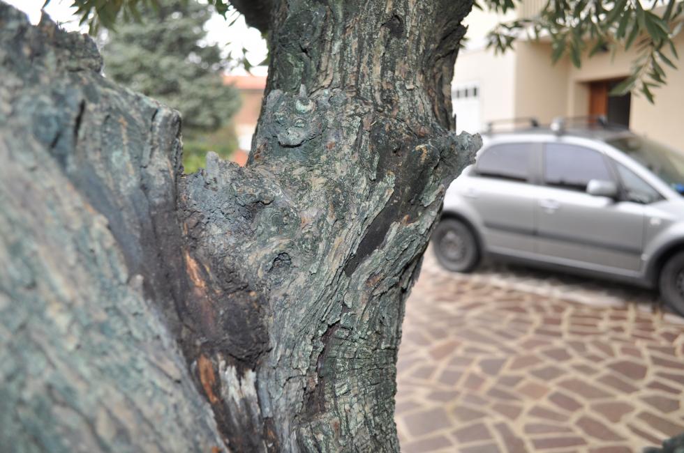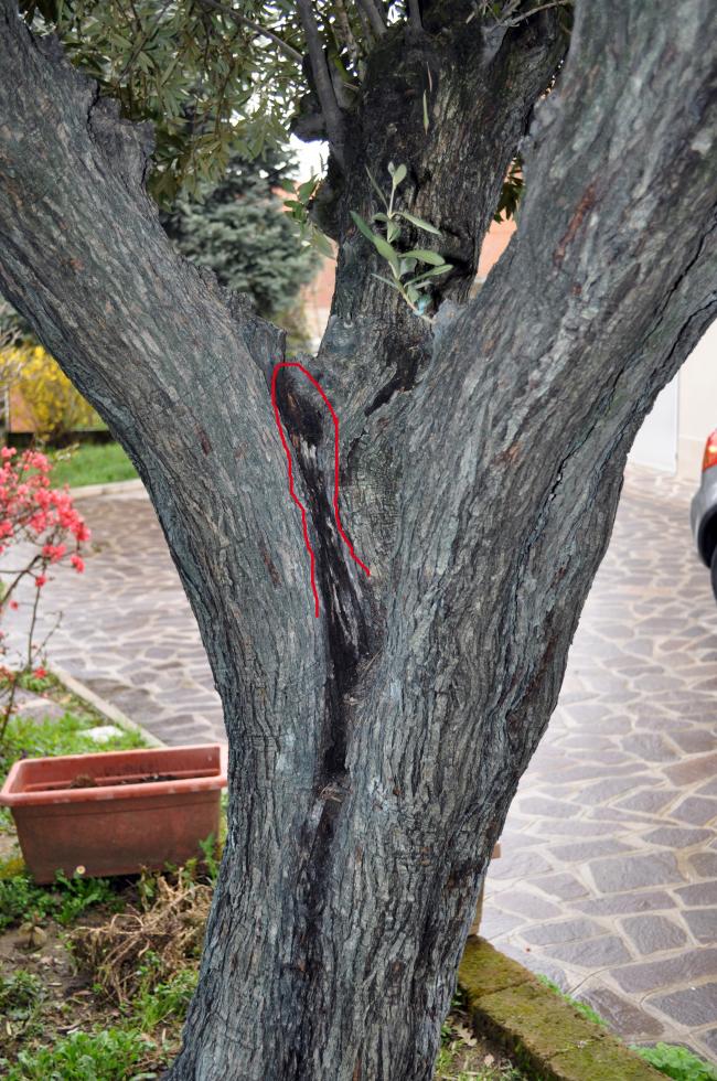Buongiorno a tutti Provo a chiedere consiglio per un olivo che ho in giardino e presenta qualche problema , spero meno gravi di quello che penso. Non sono esperto di olivi, ma in questi anni mi sono un po’ documentato leggendo e guardando immagini. Credo sia un olivo Spagnolo e anche qui è stato fatto un errore, non abbiamo chiesto la provenienza prima dell’acquisto. Con il senno di poi …… adesso lo prenderei Italiano . Se non ricordo male, è stato acquistato nel 2014 e da inesperti abbiamo preso la classica fregatura. Vorrei provare a salvare il salvabile. Aveva già gravi problemi di rogna sui rami più grandi. Io e mio padre non ne sapevamo nulla e ho scoperto il problema solo dopo alcuni giorni che era stato piantato nel giardino. Ho fatto una ricerca per capire cosa fossero quei tumori sui rami e ho scoperto la brutta notizia. Ho mandato una mail al vivaio e sono stato liquidato con la frase : sono danni provocati dalla gelata di qualche anno fa e dalle grandinate, dai del rame e pota i rami più infestati. Alcuni anni prima dell’acquisto c’era stata una grossissima gelata durata diversi giorni. Da allora ho fatto trattamenti rameici in continuazione e fino a 1 anno e mezzo fa ero riuscito a non fare peggiorare la malattia. Dopo ho avuto problemi di tempo e salute e da 1 anno e mezzo è stato lasciato al proprio destino. Ho fatto una ricerca e ultimamente ho trovato un prodotto che sembra avere buoni effetti sulla rogna, l’ho già acquistato e proverò anche questa. Non so se si possono fare nomi di prodotti, è a base di rame e zinco. Tralasciamo la rogna e veniamo al resto. Già subito dopo l’acquisto, mi ero accorto di vecchi tagli con la parte del legno annerita senza corteccia, ma non ci ho dato peso. Con il passare degli anni la cosa peggiora, nelle vicinanze di quei tagli, mano a mano che salta via la corteccia non viene rimpiazzata dalla nuova e il legno rimane scuro e liscio. Ormai ne ho un po’ ovunque. Non so se è un problema di carie o se anche questo è stato provocato dal gelo. Provo ad allegare una serie di foto sperando che qualche persona esperta mi sappia fare una diagnosi precisa .
