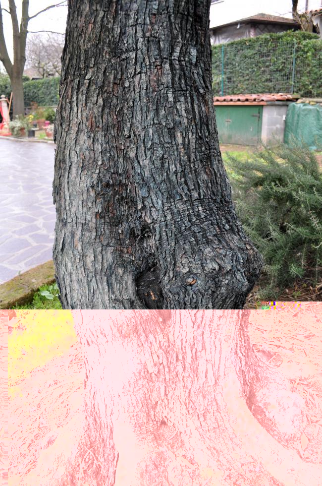 Quasi tutte le foto sono state fatte appena dopo che è piovuto e quindi la corteccia presenta colore non uniforme poiché bagnata. L’albero non è mai stato potato. Negli anni è stato tagliato qualche ramo troppo lungo o devastato dalla rogna. Ho cercato in rete per capire come si pota, ma è meglio se lo faccio fare ad altri. Dovrebbero venire a potarlo a breve e cercherò di fargli togliere più rogna possibile. Certo che se tolgo i rami più infestati ! mi rimane spoglio e con solo rametti giovani. Ho provato anche a tagliare il solo tumore della rogna e disinfettare con rame molto carico, il risultato è stato ottimo poiché a distanza di qualche anno, in quel punto, non si è ripresentata. Purtroppo ho anche il gatto del vicino che si fa le unghie attaccato all’albero e nella zona delle radici, per quello davo il rame anche nel tronco e alla base. I rami sono piegati a causa della neve che è venuta quest’inverno. Con l’arrivo di burian è stato anche coperto. Ho fatto un enorme sacco di tessuto con un lato aperto che ho poi graffettato. Negli anni passati facevamo anche un telaio tipo gazebo, ma da quest’anno mio padre ha gettato la spugna. Ormai inizia ad avete una certa età.