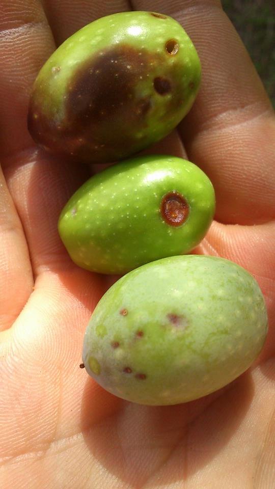 L'ultima in basso ha fori di prova da Bactrocera, ossia mosca dell'olivo.
