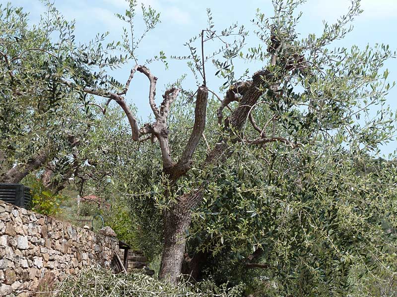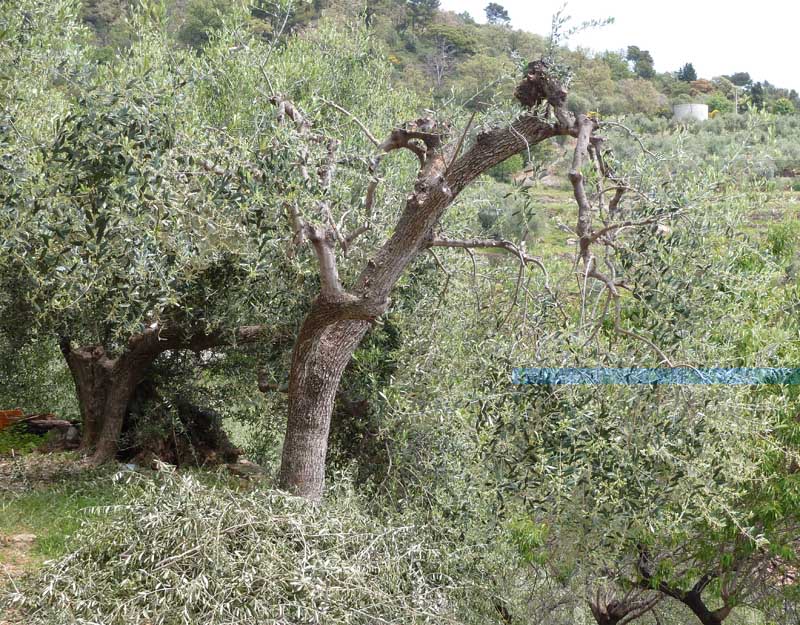 Sono Ligure e di Taggiasche ne vedo molte. Credo di capire come sono state potate le tue piante. Dalle mie parti si chiamano "a fontana" perchè i rami si piegano verso l'esterno, sono tutti spogli, e tutti i rami a frutto sono sviluppati verso il basso in perpendicolare, a ciuffi. Io ti consiglierei di far crescere qualche succhione verso l'alto, di sceglierne poi uno (il piu' vigoroso) per ramo, e magari di piegarlo un po' con una corda verso l'esterno. Praticamente, col tempo, ricrei la "fontana" ma ad un'altezza maggiore. Non so se mi sono spiegato...
