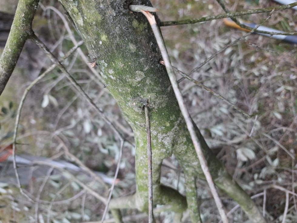 Arrivo al punto, molte di queste piante hanno poche foglie e non del tipico verde ma un verde spento e tendenti al giallo. Inoltre internamente molte piante hanno le branche che sono diventate verdi, come l'immagine sotto.