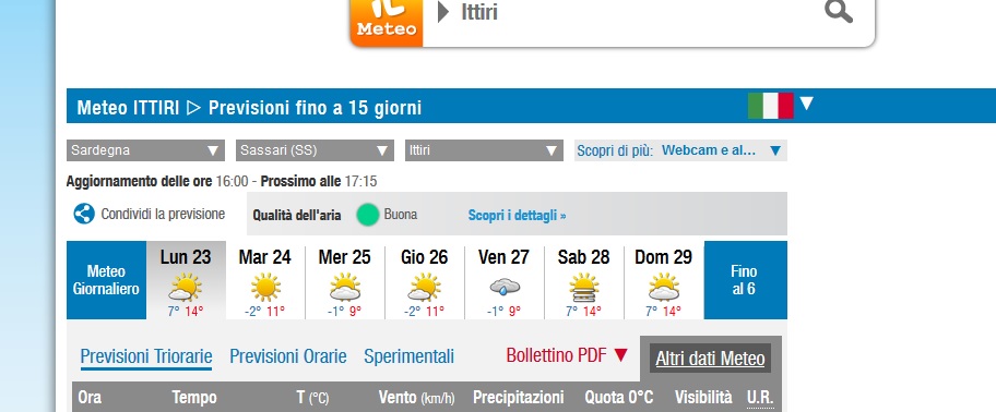 Ulivo81 ha scritto: Ciao a tutti, @hyspa che ne pensi del calo repentino delle temperature per quasi 3/4 gg? Pensi che possa un attimo rallentare lo sviluppo delle mignole, considerato che non avendo fatto freddo questa stagione, non c'è mai stato un riposo vegetativo? Oppure dobbiamo aspettarci grossi danni? Queste sono le previsioni ad Ittiri per i prossimi 4/5 giorni. L'altra questione è quella relativa ad hobbisti (noi abbiamo comunque partita iva), hai visto che in Sardegna si va verso una deroga per le uscite per chi ha orti e vigneti? https://www.youtg.net/primo-piano/24076-contrordine-in-sardegna-si-potranno-curare-orti-e-vigne-una-volta-al-giorno-e-da-soliSaluti, Antonio Con molto piacere apprendo della concessione che stanno per farvi, sperando che ciò sia copiato dai governatori delle altre regioni. Comunque credo che dovrà essere il Governo a dare una interpretazione guida per quanto si afferma nel link che alleghi. Indubbiamente siete governati al momento da gente illuminata. Considerato che siamo stanchi di ripetere che dobbiamo andare da soli nel nostro campo a lavorare in isolamento. Ciao