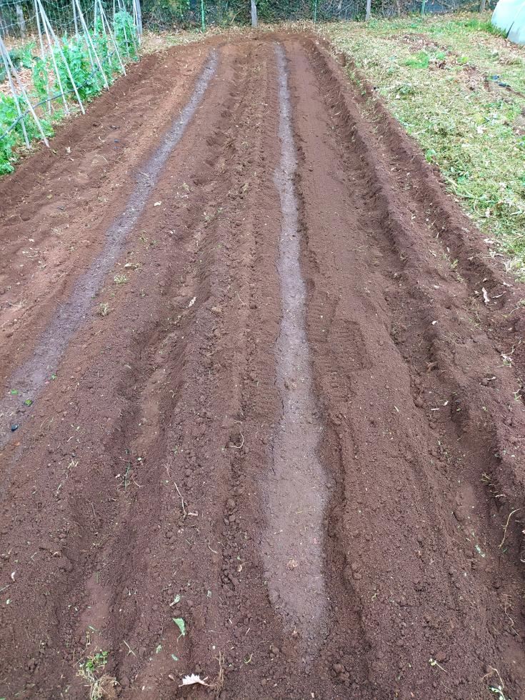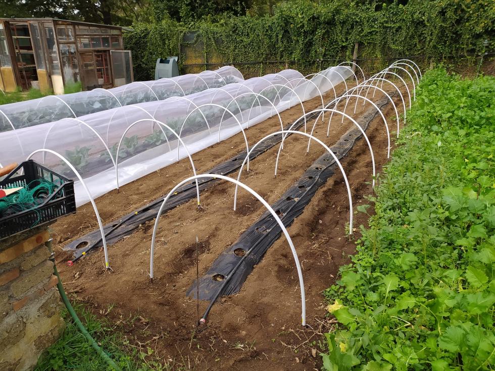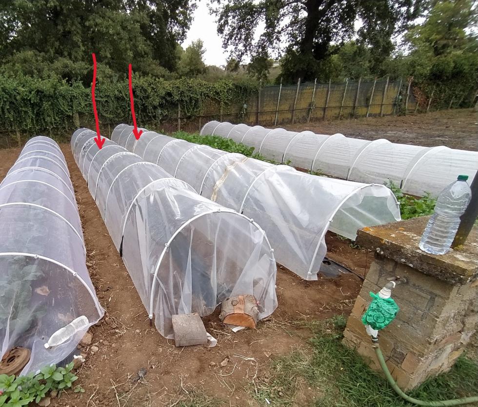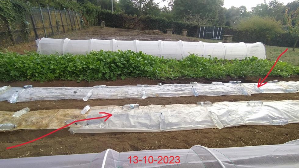 tunnel per Piselli sono trascorsi 7 giorni e i semi sono germogliati  Sono previste molte giornate di pioggia come annuncia il meteo fino al 31 ottobre prendiamo precauzioni  irrigazioni adesso con cautela, attendo che tutto sia germogliato e poi attiverò l'irrigazione sulle due prode