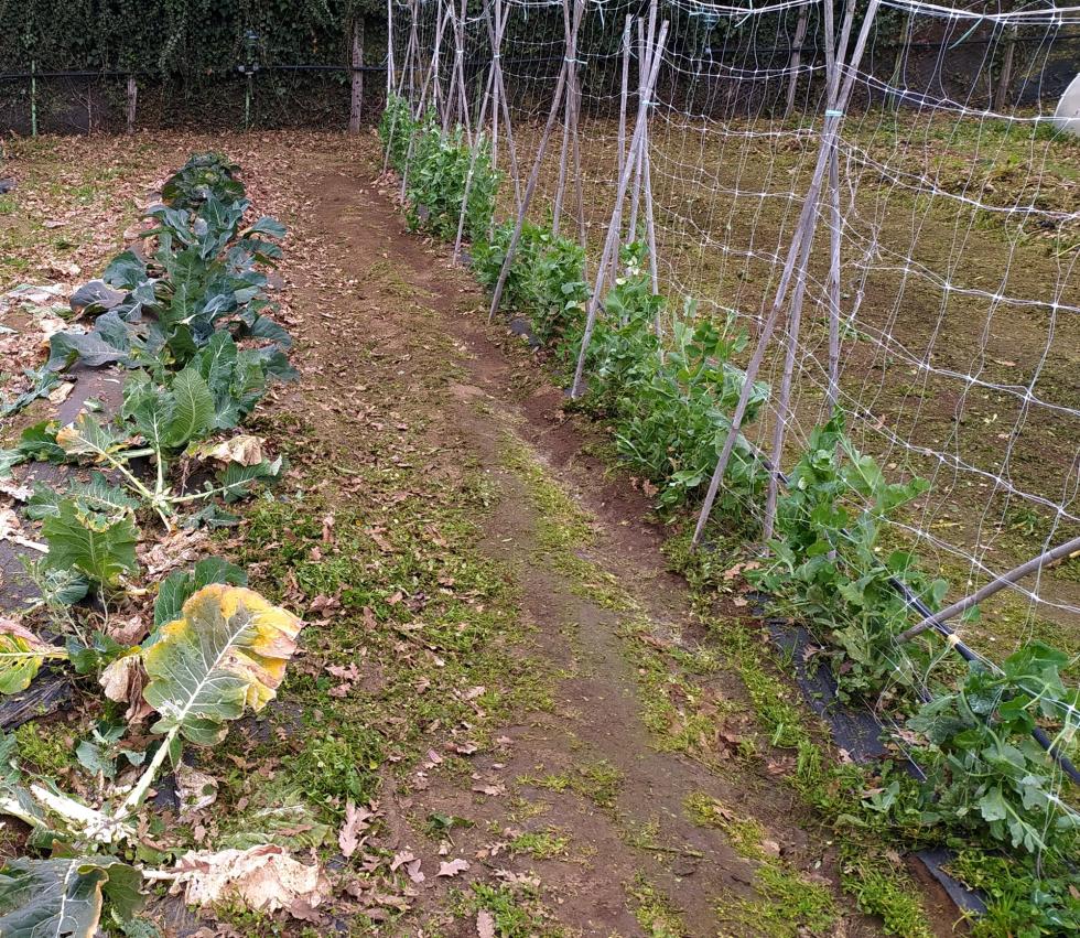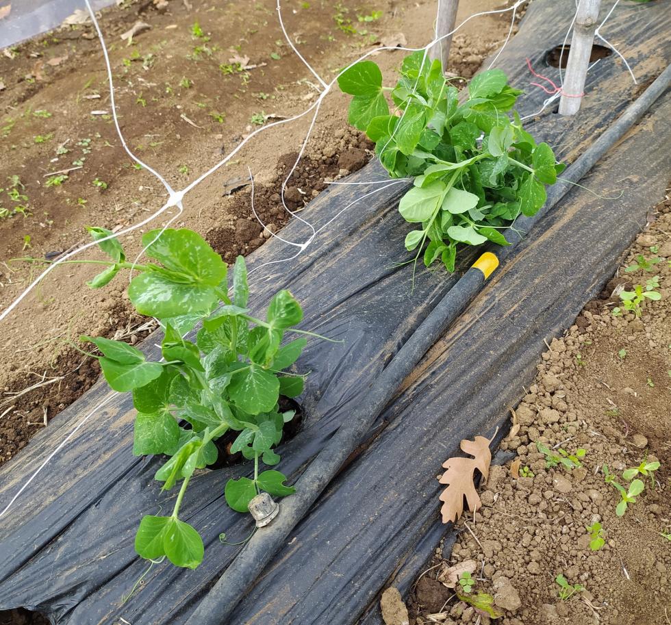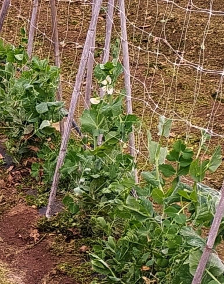 i piselli seminati a novembre crescono e già compaiono i primi fiori.