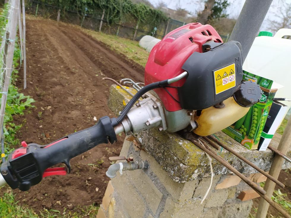 domani 9 febbraio entra la luna crescente, ma arriverà anche la pioggia e quindi è meglio seminare subito i nuovi piselli che raccoglierò a giugno. piselli mezza rama rondò. Una bella rasata con il decespugliatore per eliminare lo spazio con i residui di "cime di rapa".... e con la Ondina tuttofare do una fresata al terreno senza aggiunta di concimi in quanto già avevo già distribuito cenere di legna e fogliame a novembre.