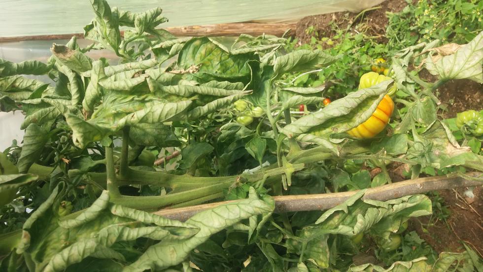 Ciao. Come da titolo avrei bisogno di una vostra consulenza sulle piante di pomodori . Una breve premessa: tipologia cuore di bue; coltivazione protetta; uso domestico 20 piante; la coltivazione si trova a quota di 950 m.slm Tutti gli anni metto le piante e costantemente si ripresenta il problema delle foglie accartocciate verso l'interno puntinate vistosamente di giallo. L'irrigazione è costante senza ristagni idrici fatta rigorosamente al piede della pianta; prima della fioritura le tratto con rame; il terreno è concimato a stallatico bovino (forse troppo....) Provo ad inserire delle foto sperando che siano sufficientemente chiare. Grazie a tutti coloro che mi potranno aiutare.